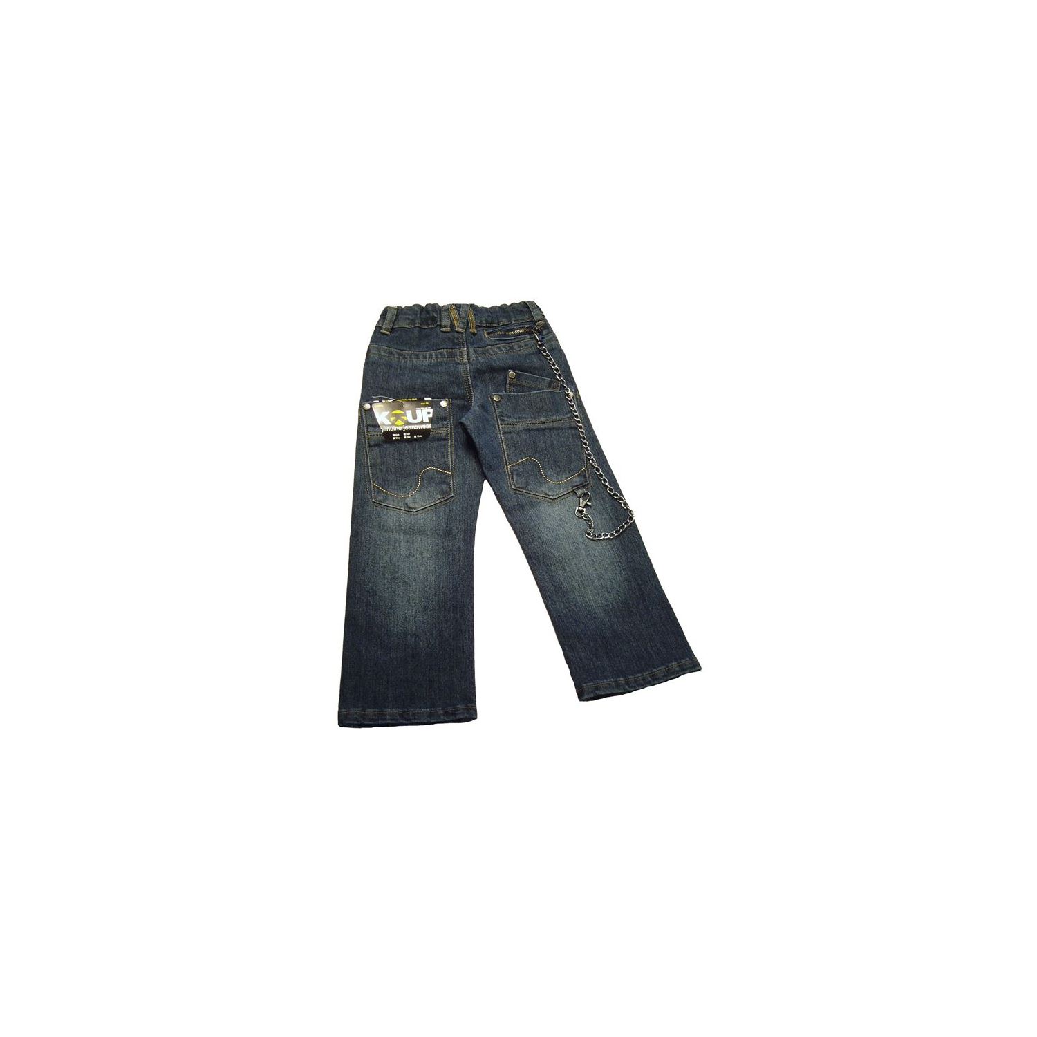 Tuffa jeans i modellen Ben från Kids-Up! Två fickor fram. Två låga fickor bak och en liten med dragkedja. Kedjan som följer med går att koppla bort. Justerbar midja.
