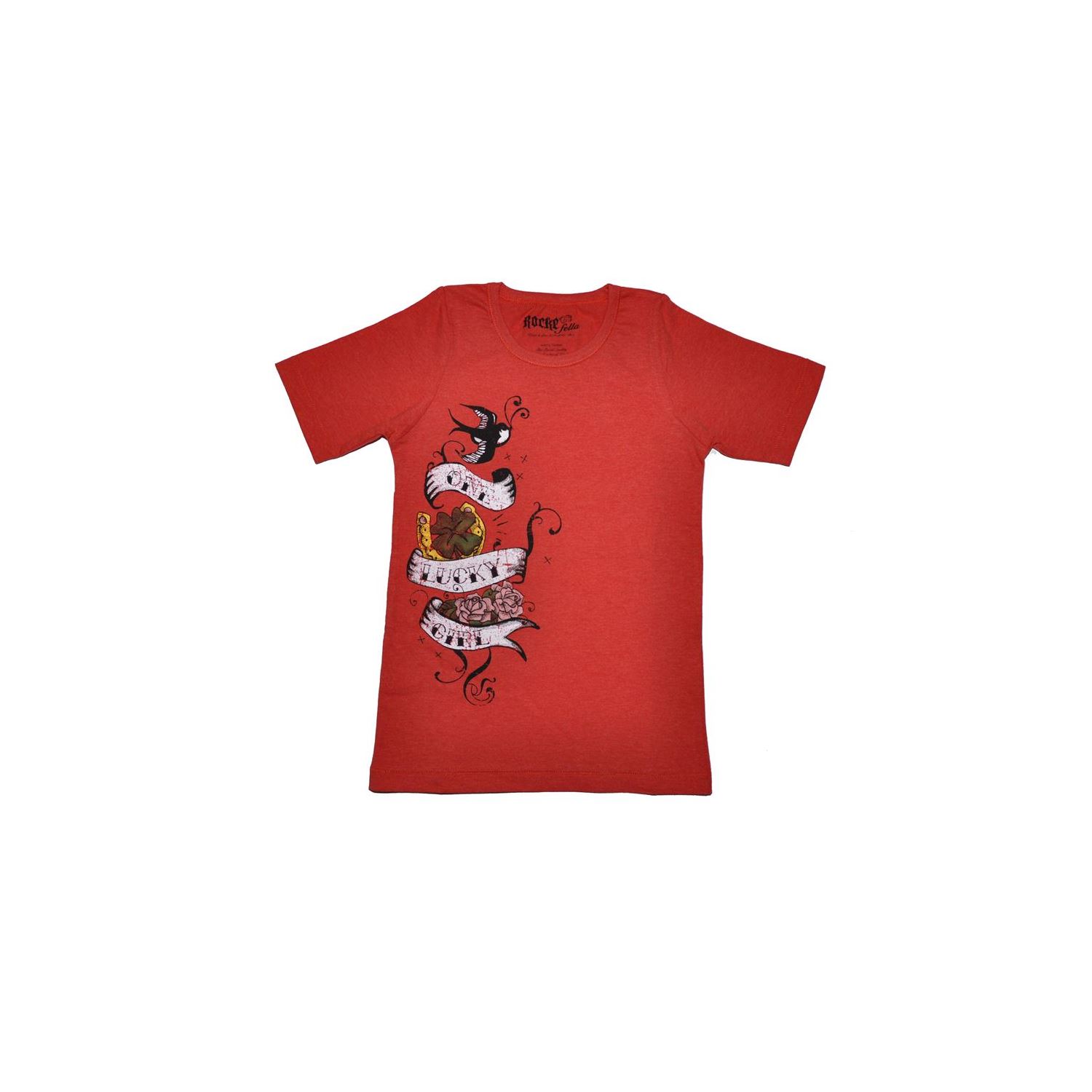 Söt, röd tunika top med tryck från svenska jeansmärket Rockefella.